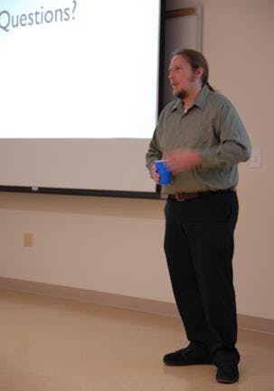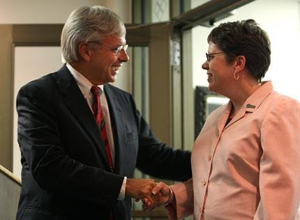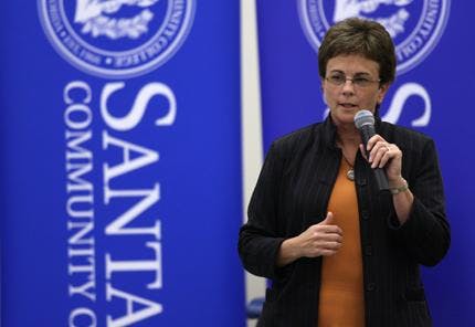 Gainesville mayor Pegeen Hanrahan and SFCC President Jackson Sasser discussed the possibility of a mass transit system for SFCC students Wednesday.
