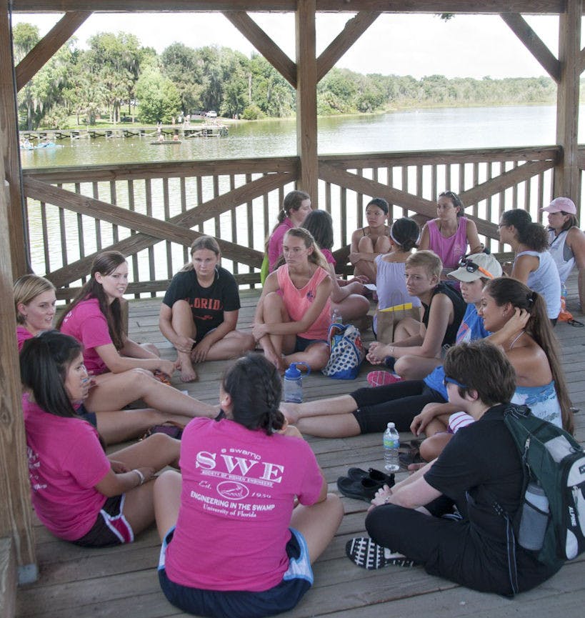 About 150 incoming female engineering students made a trip to Lake Wauburg for UF’s Society of Women Engineers eSwamp Day.
