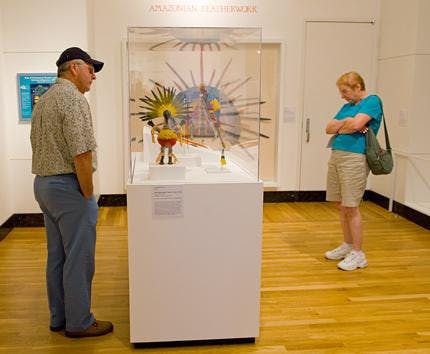 Ceremonial items, which were seized as illegally exported goods made from endangered species, are on display at the Samuel P. Harn Museum of Art.