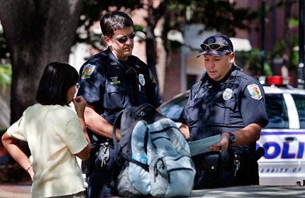 Six University police cars sat outside Marston Science Library and at least six officers searched the area for a suspected criminal Monday afternoon.