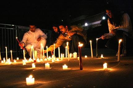About 200 students stood silently at the Reitz Union Amphitheater on Wednesday night in the midst of flickering candlelight.