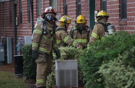 An apartment building was evacuated Thursday afternoon after a car ripped open two outdoor gas mains.