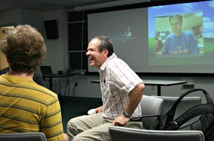 Hours after the world's largest particle accelerator completed its first test run Wednesday, UF physicists gathered to celebrate the occasion.