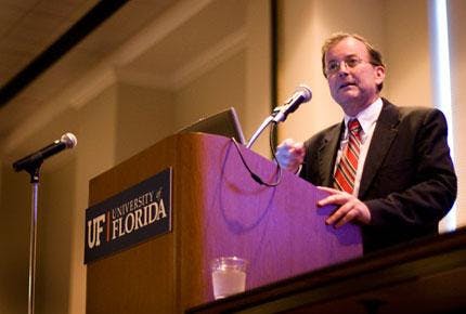 By LIA GANOSELLIS | Mar. 5, 2008Hundreds of UF students, officials and alumni gathered at the Bob Graham Center for Public Service on Wednesday morning to dedicate the center and honor its namesake - a man UF President Bernie Machen deemed UF's "most prominent graduate."