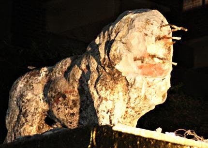 Sigma Alpha Epsilon Fraternity's lion statue outside the chapter's house was smashed again Friday - just a few months after an artist had to completely reconstruct its stone face.