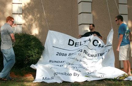 As Fraternity Row is abuzz this week with banners advertising pizza and chicken wings to lure prospective members into fraternity's homes, Sorority Row looks like business as usual.