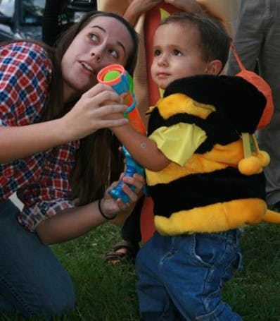 Jacob Sedesse, 5, waited in line for candy on West Panhellenic Drive wearing a No. 49 Gators football jersey for his Halloween costume.