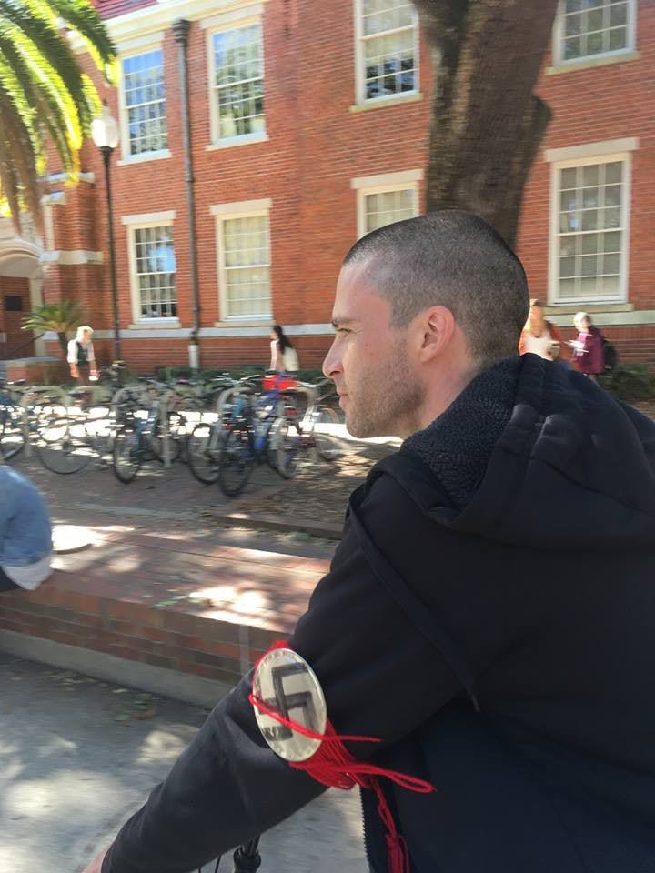 Members of the UF community gathered around a man preaching about love on Friday — a day after students and faculty members protested against a man wearing a swastika armband.
