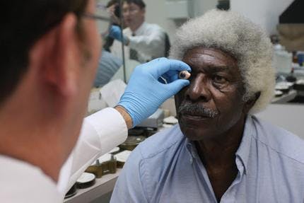 Josh Ghogan was shot in the right eye while rabbit hunting about 20 years ago.
