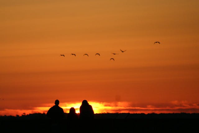 Three onlookers watch the sun rise over Paynes Prairie on Tuesday.
