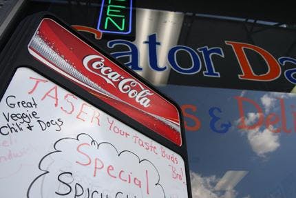 Three days after Andrew Meyer was Tasered by university police, a sign went up in Gator Dawgs.