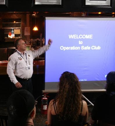 Local bar and nightclub staff gathered at Rue Bar on Wednesday night for mandatory fire safety training with Gainesville Fire Rescue.