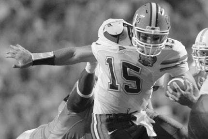 He dives head-first into concrete, bowls over linebackers and stiff-arms pesky cornerbacks to the ground.