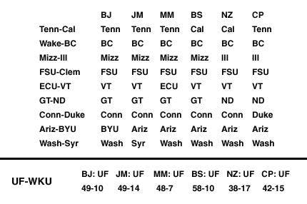 With the outcome of tomorrow's UF-Western Kenucky game seemingly decided before kickoff, we at the alligatorSports Brand Picks Column wanted to find a more competitive matchup for you to watch Saturday.