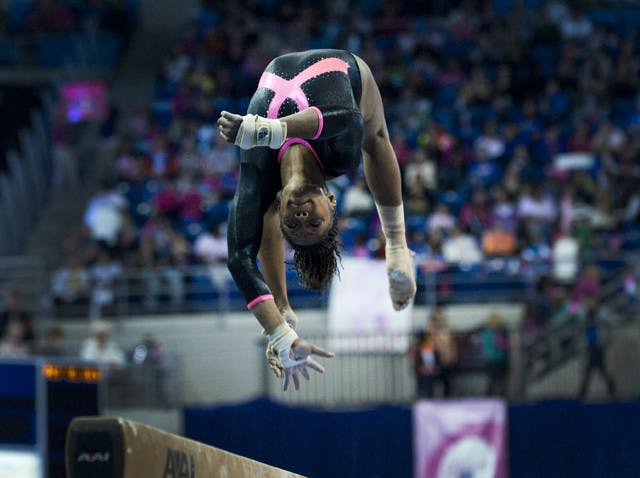 Stick it. Flash a smile. Wave to the crowd. Sprint over and embrace your teammates. Repeat three more times.