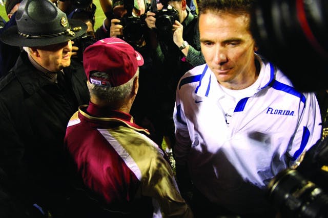 TALLAHASSEE — Florida still has one game left in 2010, but rebuilding for 2011 starts now. That was the message coach Urban Meyer emphatically delivered during his press conference after Florida State’s 31-7 drubbing of UF in Doak Campbell Stadium. The Gators (7-5, 4-4 Southeastern Conference) lost to the Seminoles (9-3, 6-2 Atlantic Coast Conference) and lost five games in a season for the first time in Meyer’s tenure. This is also the first five-loss regular season since 1988. Meyer said his coaching staff would hit the road Sunday and immediately turn their focus to bringing in as many tough-ass players as possible.
