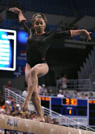 With 6,032 fans cheering and clapping along with the music, Amanda Castillo danced her way to a nearly perfect floor routine.