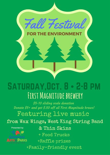 This Saturday, from 2 p.m. to 8 p.m., First Magnitude Brewing Company will be hosting the Fall Festival for the Environment.