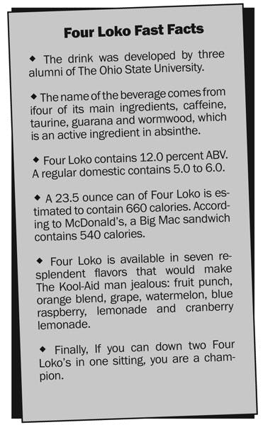 Civilizations rise and fall, such is the cycle of human history. There are many things attributing to the downfall of a civilization, such as disease, wars or societal collapse. However, I realized recently that there will be only one thing to bring down modern Western civilization. Dear readers, I have seen the harbinger of the end of time, and it exists among us in startling quantity. Of course, I refer to Four Loko.