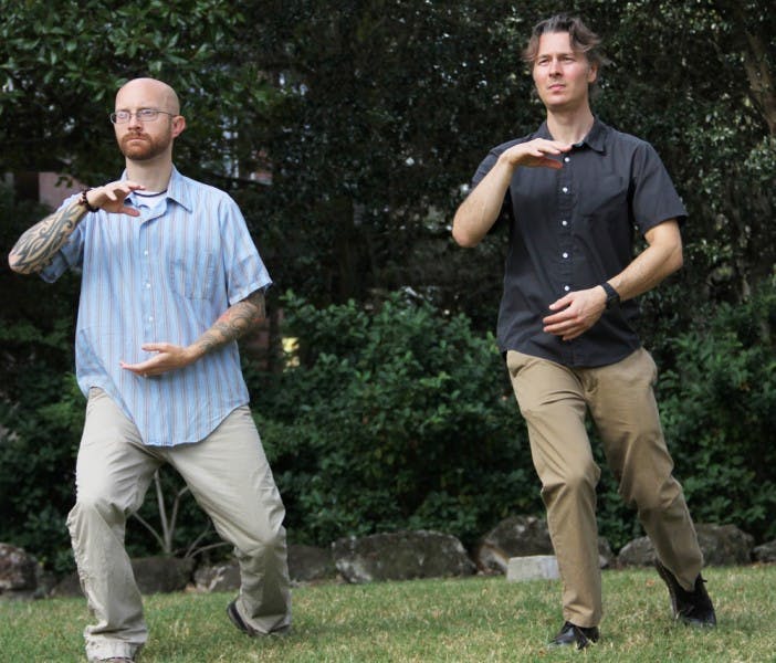 Lauren Hoefer, 20, Channing Malz, 20, and Cornelius Pride, 24, rehearse a dance for “Dance 2013: Drop” in the Nadine Mcguire Black Box Theatre on Wednesday night. “Dance 2013: Drop” premieres today at 7:30 p.m. and runs until Feb. 24. Tickets are available at the University Box Office.