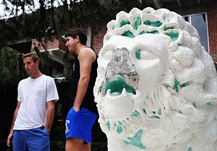 Sigma Alpha Epsilon Fraternity's lion statue outside the chapter's house was smashed again Friday - just a few months after an artist had to completely reconstruct its stone face.