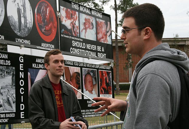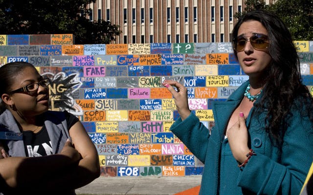 About eight students rallied together on the Plaza of the Americas Monday morning in support of giving education rights to immigrant students.