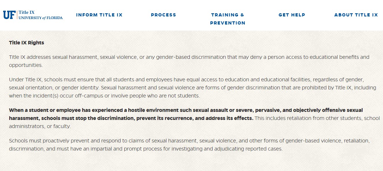 By Screenshot of UF Title IX website | Jan. 17, 2020Title IX
